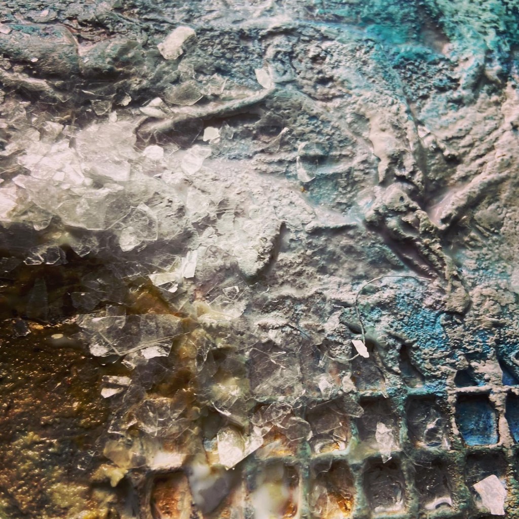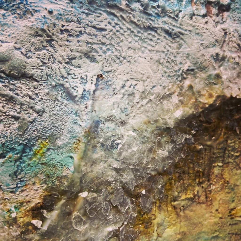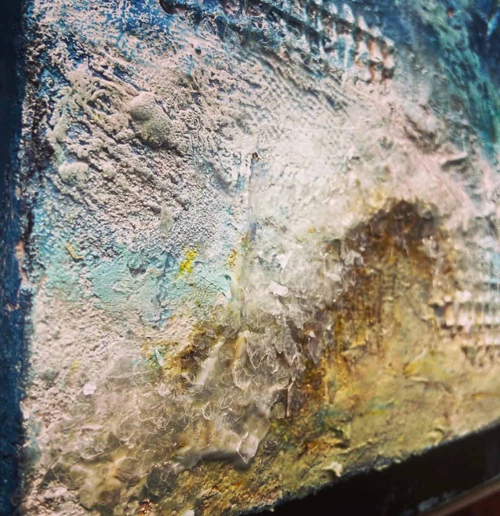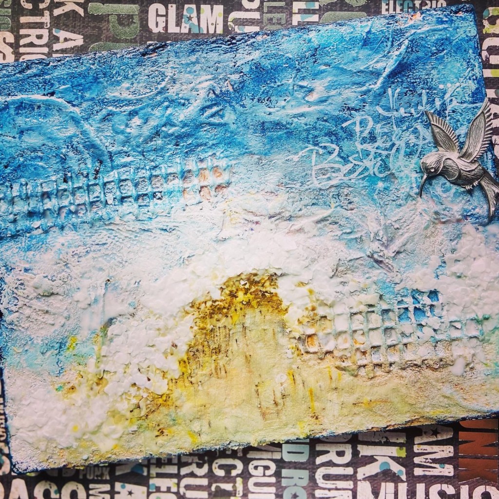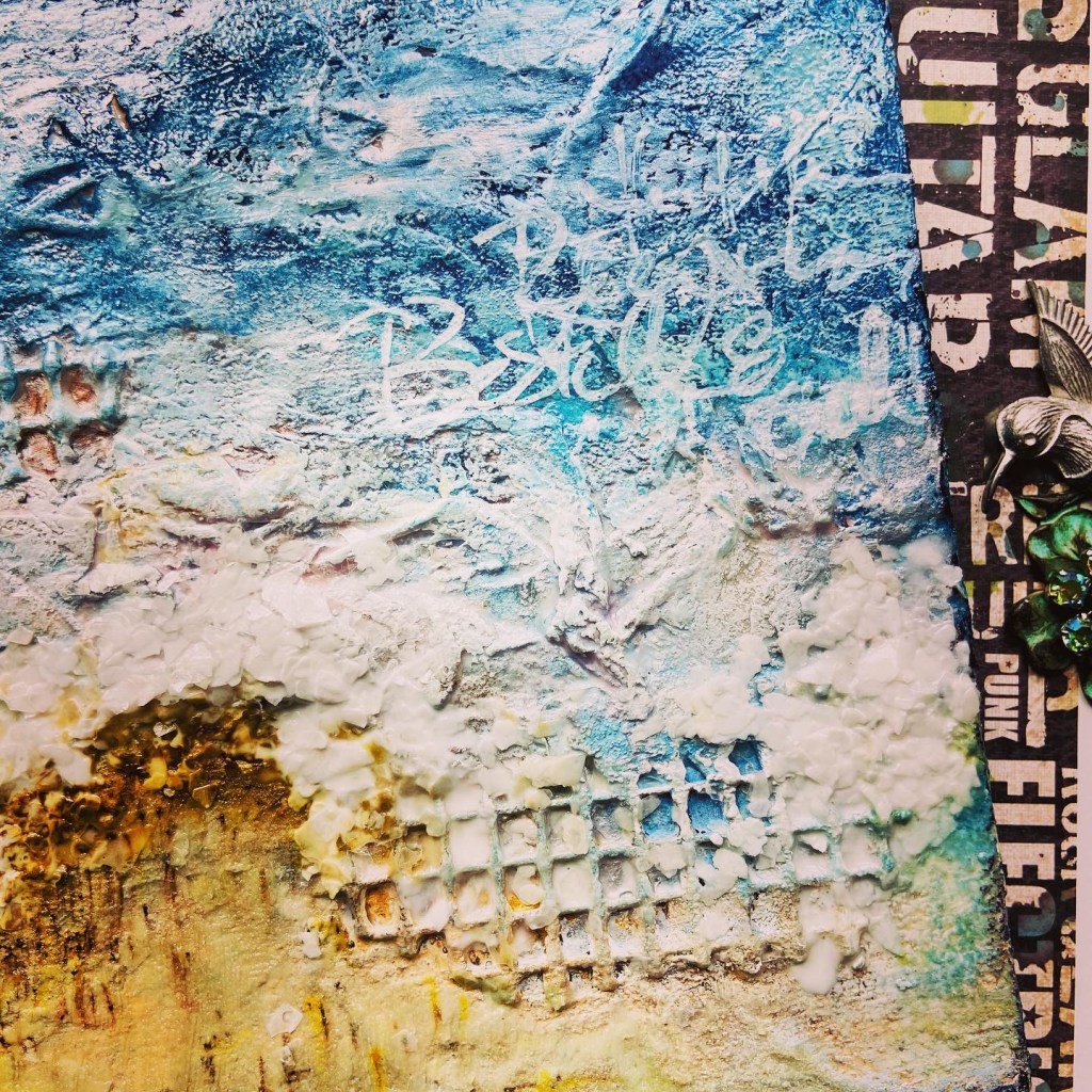 That thought of Him being with me in the midst of the raging waves of life while I swim my way through, trusting Him to guide me in wisdom to make choices that are not easy to make but they will bring out the greatest good; that helped me recenter. That helped me be still for a moment and catch my breath. Maybe in this season, being still for me is all about letting go of what I can’t control to focus on what is in my power to do so that my part in the bigger picture can be accomplished joyfully. Through these gorgeous layers of texture and paints I was reminded once again that the waves will calm down, and I will be able to appreciate the beauty of the ocean once again…I can chose to be still.